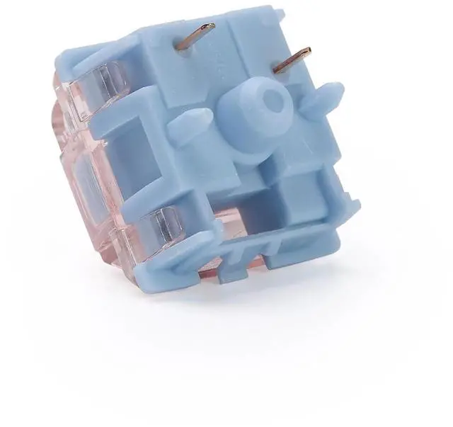 Gateron melodic switch is SMD LED compatible. And the upper housing is a transparent pink color, bottom housing is in light blue color. 5-pin structure is much more reliable for the key switches. This switch can be suitable for most mx mechanical keyboard.
