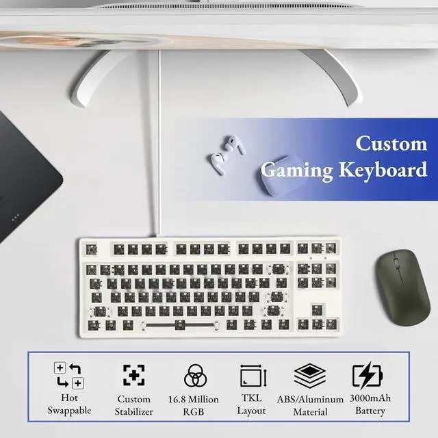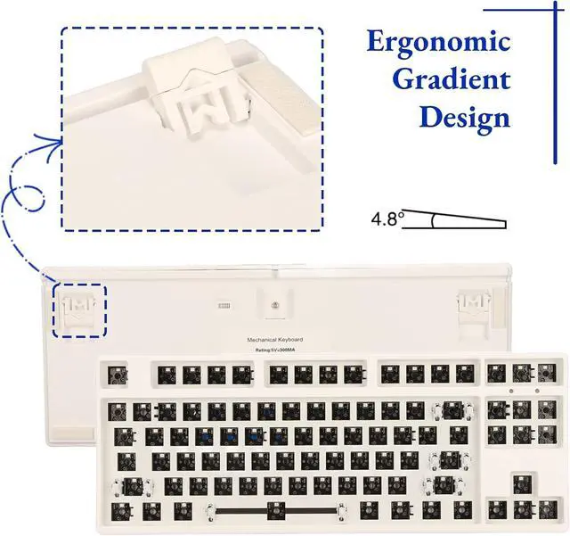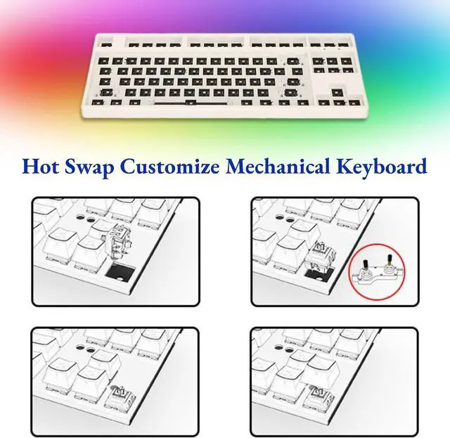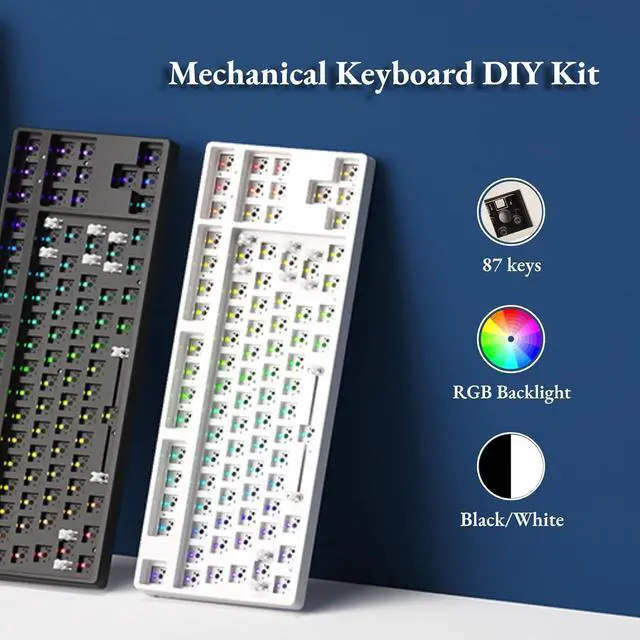 STANDARD 87-KEY TKL LAYOUT: The mechanical keyboard DIY kit uses a standard 87-key TKL layout, 80% of the size leaves more room for mouse movement and sliding, and other mod parts (excluding switches and keycaps) can be easily obtained from the market ).