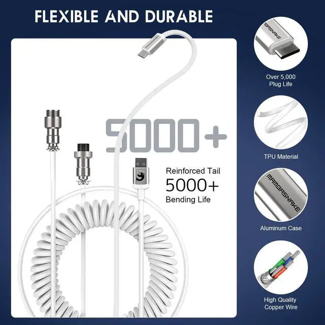 Custom Coiled CableThe K87 wired keyboard Cable enhanced with double-sleeved custom coiled keyboard cable,using high-quality copper wire with aluminum shielding foil,strong and durable material.USB TypeC to USB-A Cable supports safe fast charging and the speed of data sync up,This pairing will enhance your gaming and typing