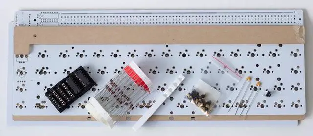 All required parts (diodes, caps, and ICs) are through-hole, meaning they're easy and forgiving to solder