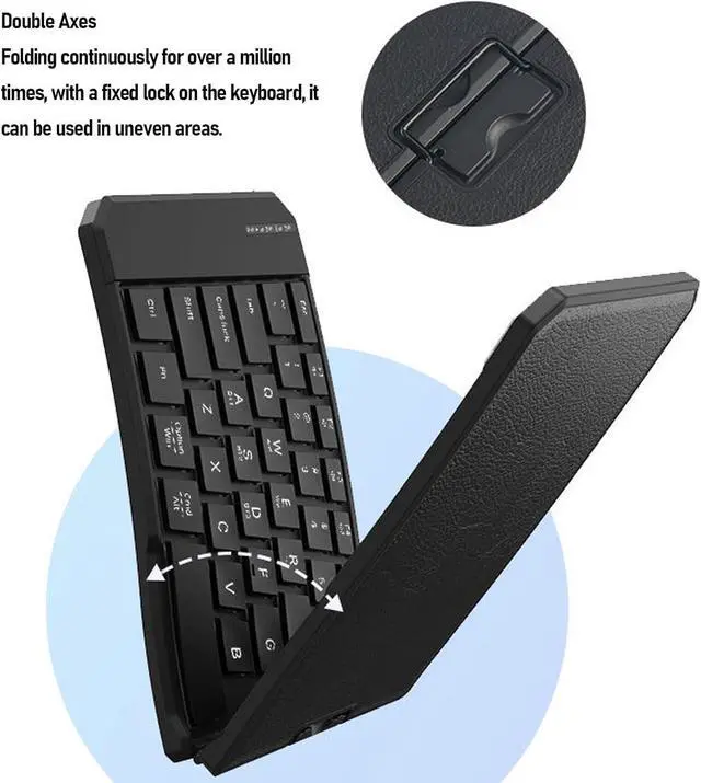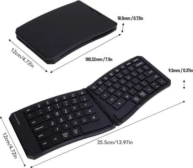 Portable Design: The foldable keyboard features a slim, lightweight frame with a compact size ideal for backpacks or briefcases. The Bluetooth keyboard enhances mobility, enabling easy transport for remote work, travel, or study environments without sacrificing typing comfort.