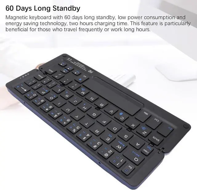 60 Days Long Standby: Magnetic keyboard with 60 days long standby, low power consumption and energy saving technology, two hours charging time. This feature is particularly beneficial for those who travel frequently or work long hours.