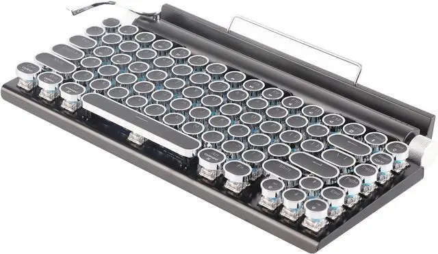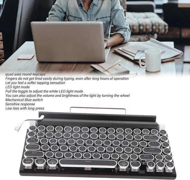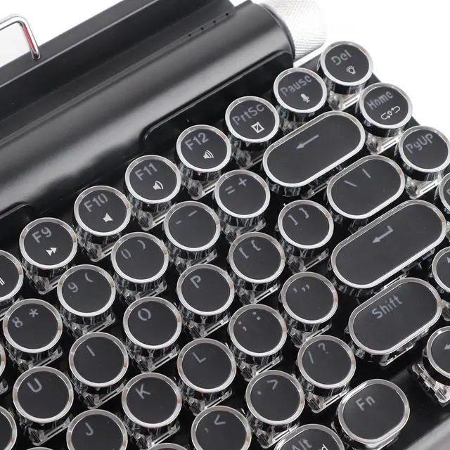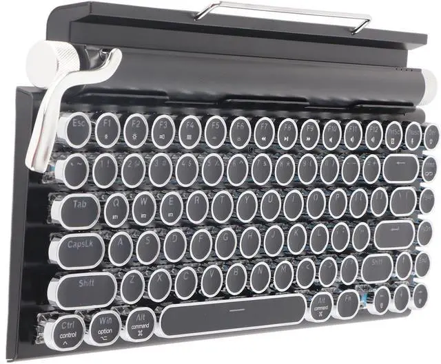lvifloae 83 Key Typewriter Mechanical Keyboard Vintage Wireless Bluetooth Mechanical Keyboard with Metal Round Keycaps for Gaming Office Wood Grain Color (Black)