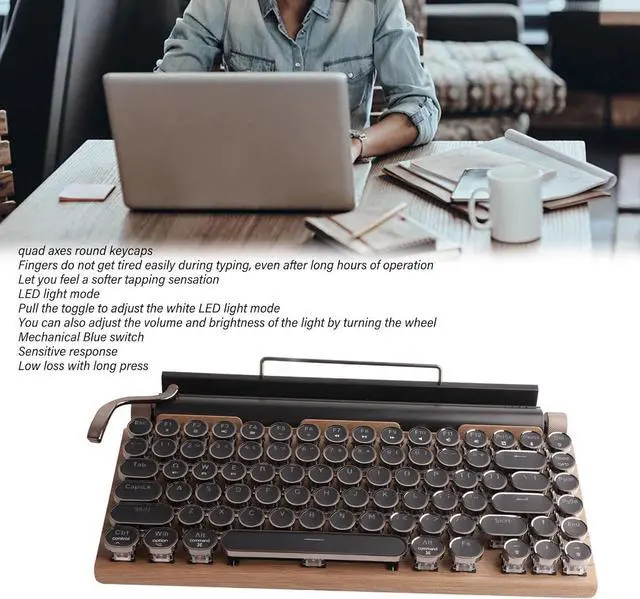 1.Ergonomic Quad Axes Round Keycaps for Comfortable TypingThis Bluetooth mechanical keyboard features quad axes round keycaps, designed to reduce finger fatigue even during long hours of typing. The rounded shape and optimized key structure deliver a softer, more comfortable tapping sensation, making it ideal for extended gaming sessions or office work.