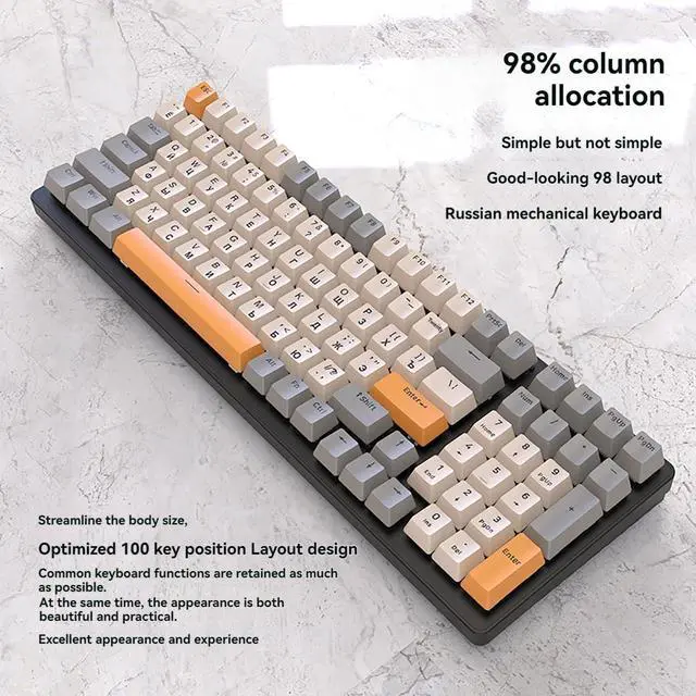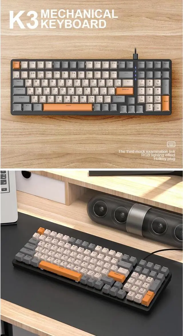 K3 Mechanical Keyboard Russian Mechanical Keyboard 100 Keys Gaming Office Gaming Computer Keyboard Full Keys No Punch Multiple Light Effects Personalised Keycaps Wired Keyboard