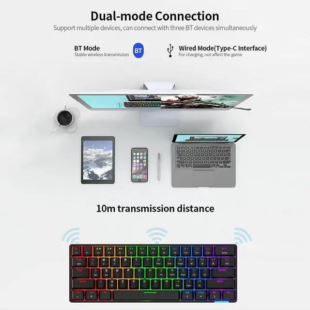 BT/USB wired dual-mode connection, support multiple devices, can connect with three devices simultaneously. 0m transmission distance, detachable pe-C cable, portable and .