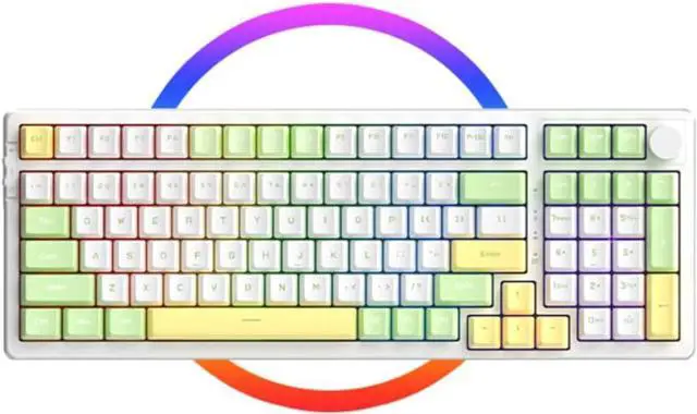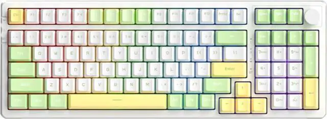 Specifications: Product brand: Product model: AK992 Color: Green Transmission mode: USB wired + + 5.0 Interface pe: pe-C face Product size: 39 * 42 * 40mm Product weight: 8O0g battery: 4000mAh Shell : ABS Key cap : P OEM Wire length: .6M Light effect: 8 light effects, Key layout: 99 keys + knob Support system: 7/8/10/11/MAC/Android Packing List: * Keyboard