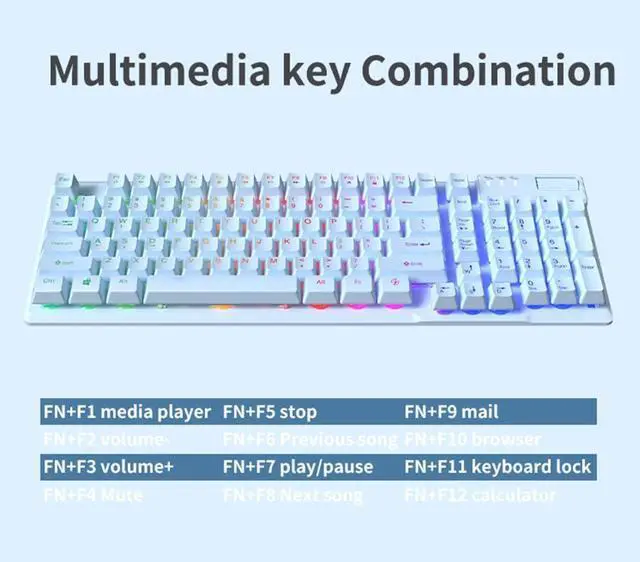 <>Specifications: Product Brand: Product Model: AF981 Color: Black/ Blue(optional) Connection Mode: USB Interface pe: USB Product Size: 40 * 09 * 44mm Product Weight: 800g Shell : ABS Keyboard : ABS Line Length: .6M Light: Key Layout: 99key Antighost: 9 key Support System: Win 7/8/10/11 <>Packing List: * Keyboard