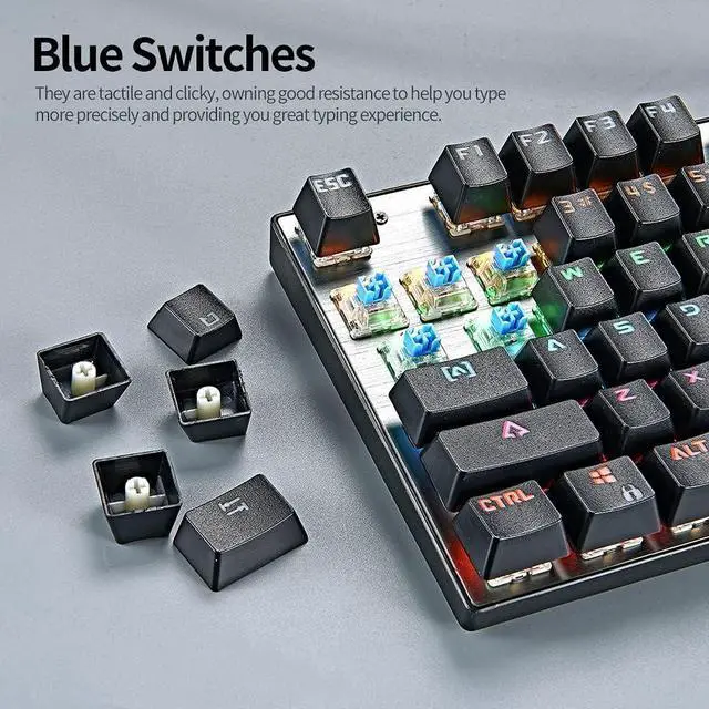 Blue Switches. They are tactile and clicky, owning good resistance to help you pe precisely and providing you great ping experience.