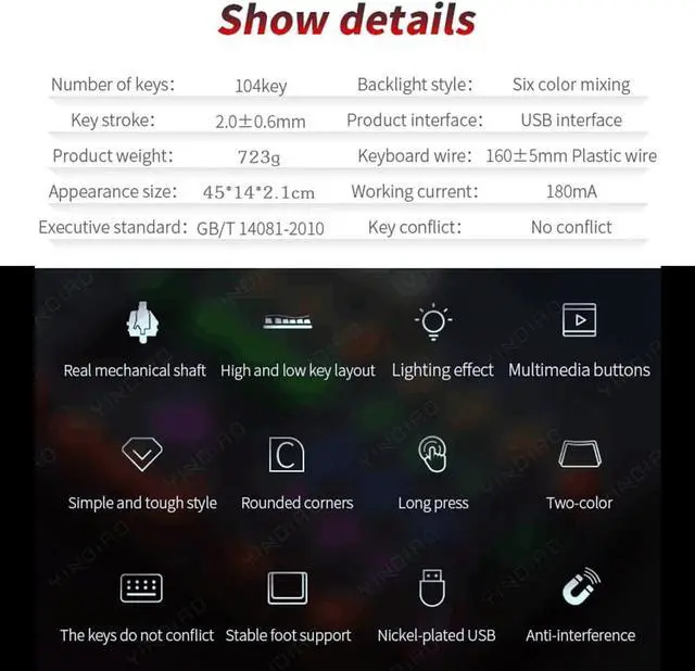 • Mechanical Shaft: Strict selection, meticulous craftsmanship, long-term pressing, mal rebound loss, a true gaming mechanical shaft.