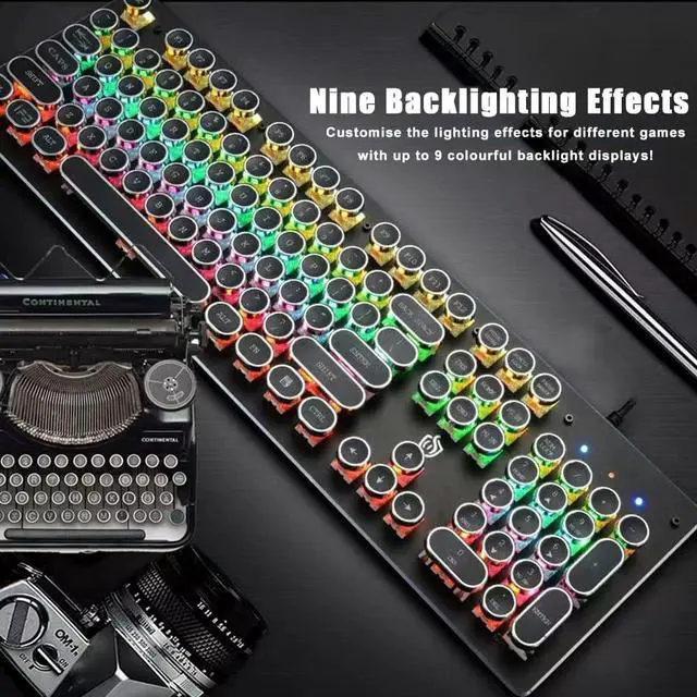 • Vinta Design: The new retro talgic design, novel round pewriter style punk electroplated keycaps, floating electroplated keycap design with excelle .