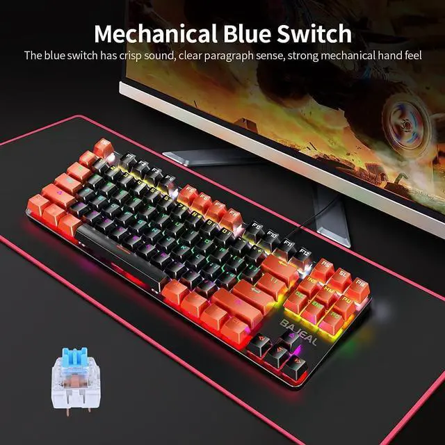 The mechanical blue switch has crisp sound, clear paragraph sense, mechanical hand feel.