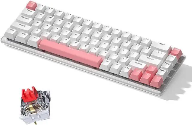 68-Key Mechanical Keyboard 68 Keys Layout FN Shortcut Full -Ghosting Backlight Multiple 0 Lighting Modes Detachable Cable Dual-Color Injection Keycaps Durabili Multi-System White & Red axis