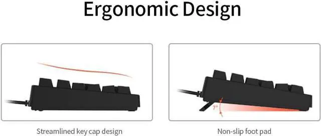 Ergonomic design, lined key cap design, with ot pad, comfortable.