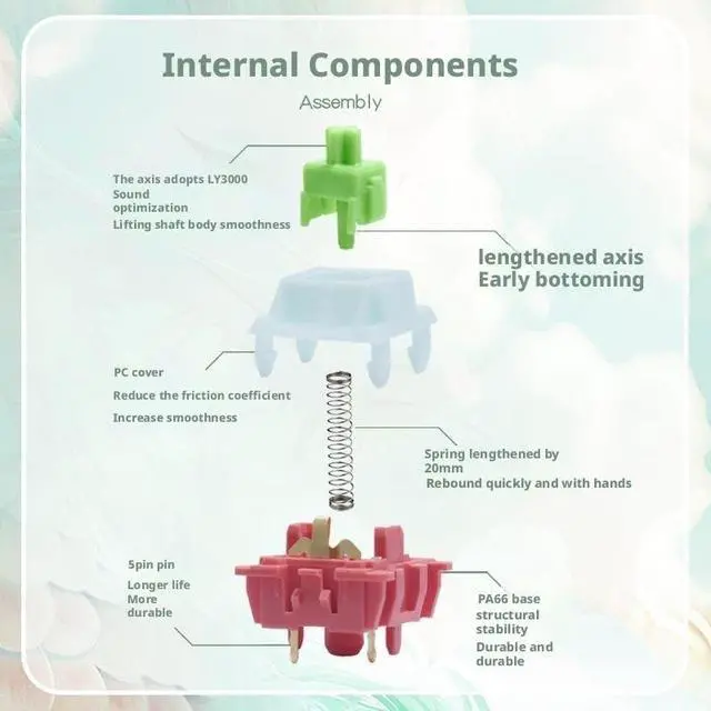 MX-Compatible 5-Pin Design: Secure fit for hot-swap or solder-mounted PCBs, ensuring compatibility with most mechanical keyboards.