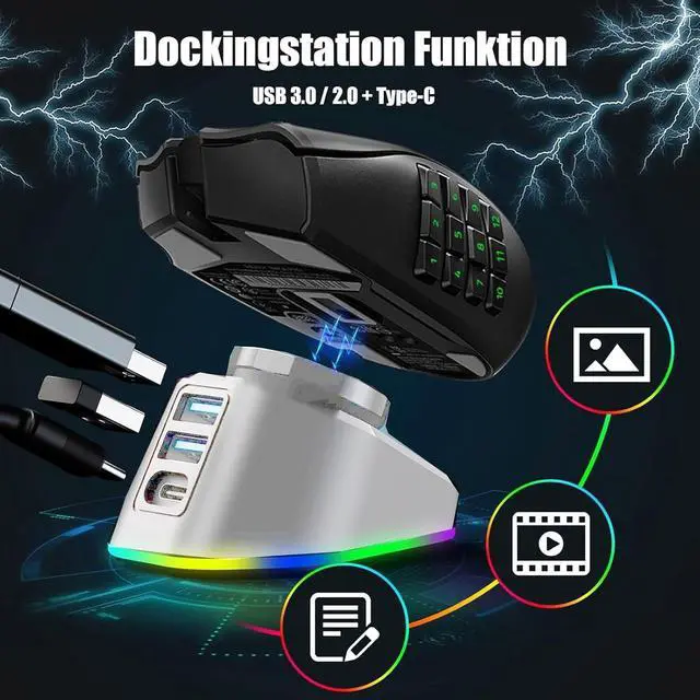 2 in 1 charging dock for GPW4/G502/X/G903 gaming featuring double USB3.0 port for simultaneous charging and data transfer