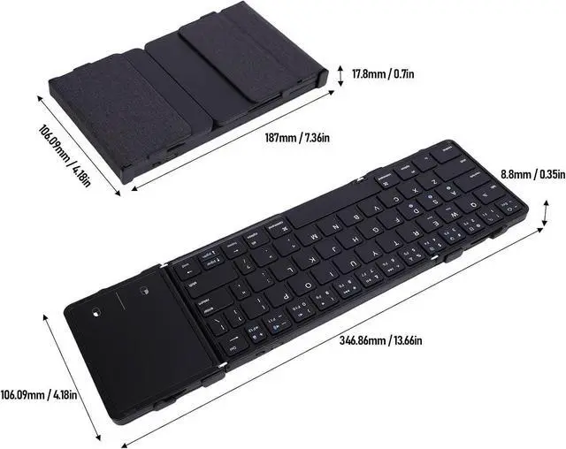 Convenient Foldable Wireless Keyboard: Open size of 346.86x106.09x8.8 mm provide a full size experience, while the foldable design ensures versatility and convenience. For excellent performance, use it on a flat floor, as the folding hinge does not lock in place