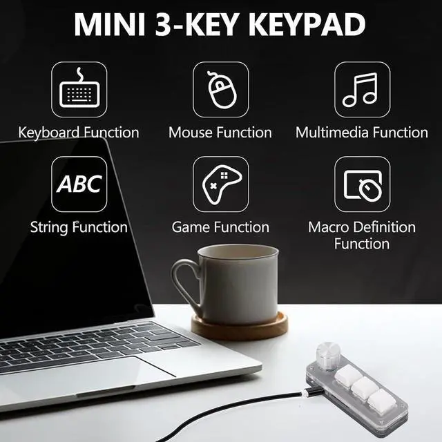 [MULTIFUNCTIONAL]: This 3 key macro pad offers versatility for tasks like copying, pasting, gaming, and industrial control, making it a must-have for various settings.