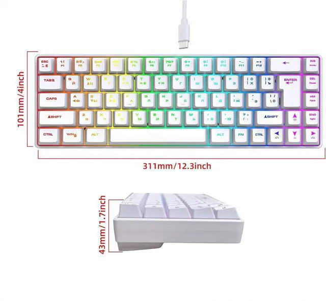 Keyboard with detachable line and USB to type c connectors for easy typing
