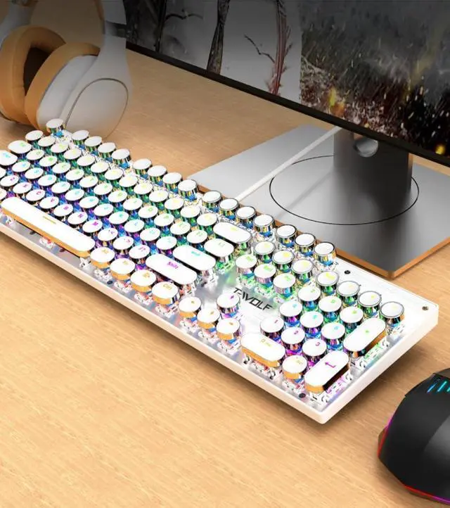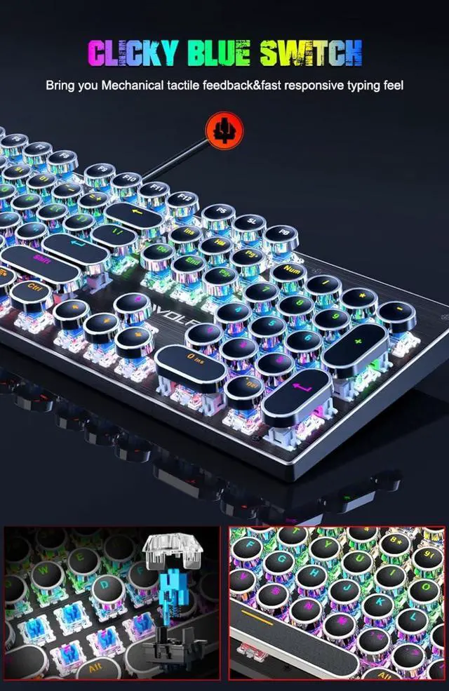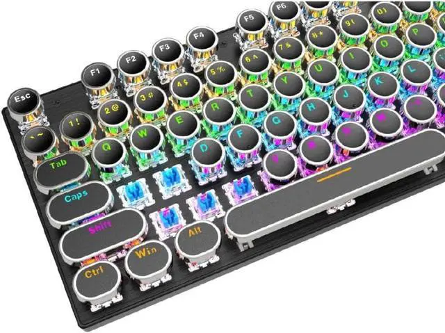 [Retro Round Keycaps]: This computer keyboard adopts retro round concave keycap, a square mechanism under each key improved stability, noise reduction, quick rebound and no delay.