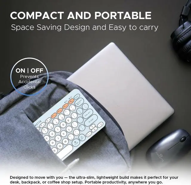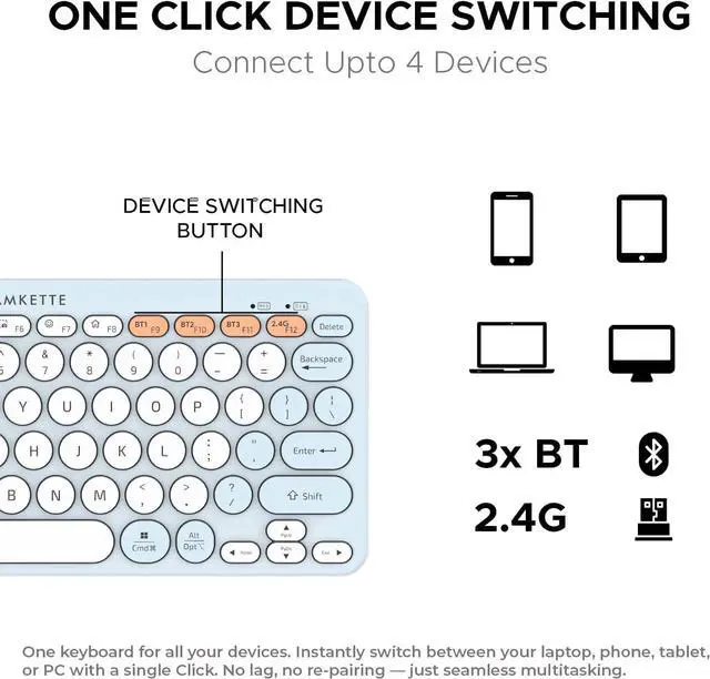 -- : Effortlessly switch between 3 Bluetooth devices and 1 USB 2.4 GHz wireless connection for seamless multitasking.