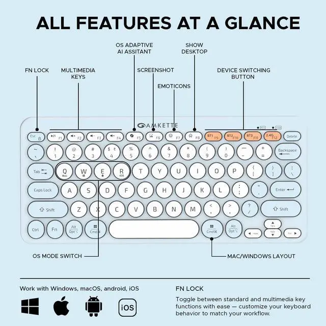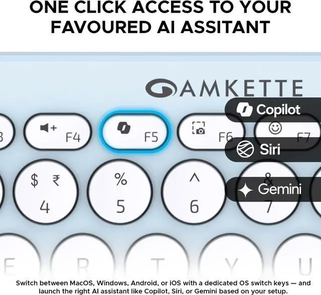 - : The AI Assistant key intelligently adapts to your device launching Microsoft Copilot on Windows, Siri on Apple, and Gemini on Android for seamless, cross-platform productivity.