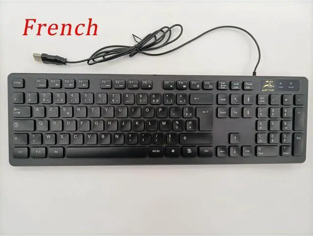 104 Keys Office Keyboard, German/French/Spanish/Italian/Arabic/Swedish/Russian/Portuguese Keyboard, USB Port, Ultra Slim and Quiet, Well Layout of Keys, Black, FR