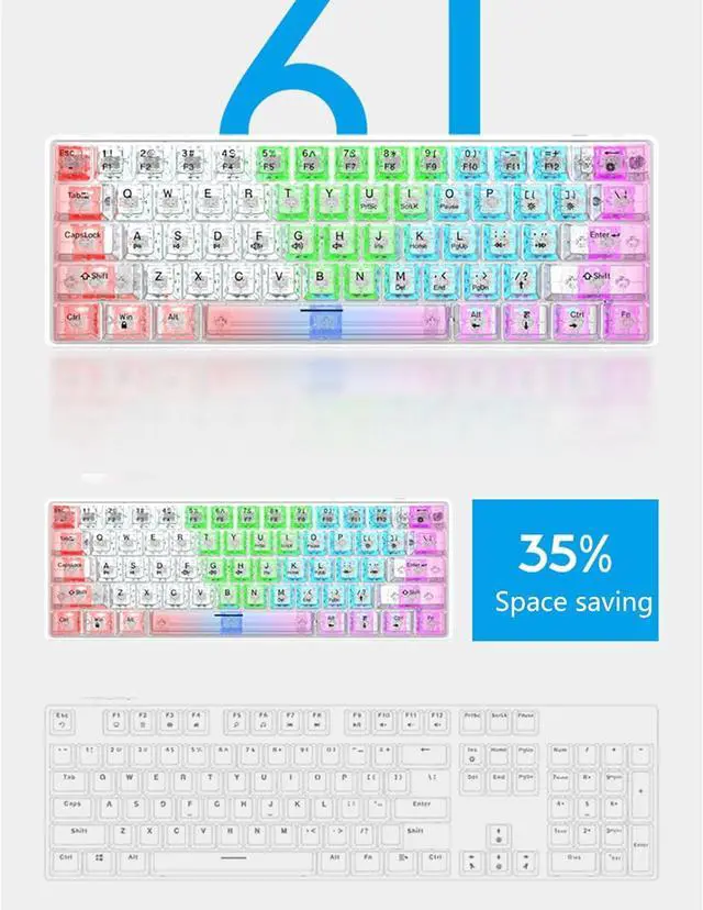 Optimized 61keys layout design retains the commonly used keyboard functions as much as possible, while the appearance is beautiful and practical.