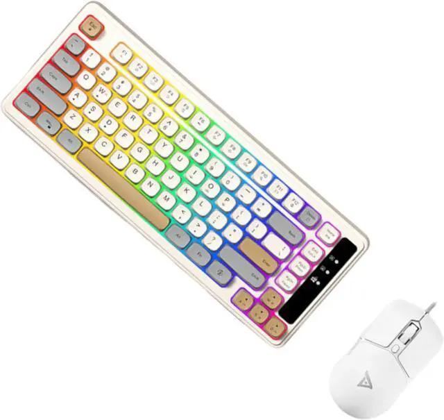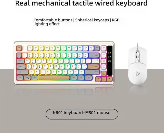 KB-01 Mechanical Feel Film Keyboard Gaming, Wired Connection 82 Keys, RGB Backlit, Type-C, Ergonomic Design (Keyboard + Mouse-Beige Three-Piece)