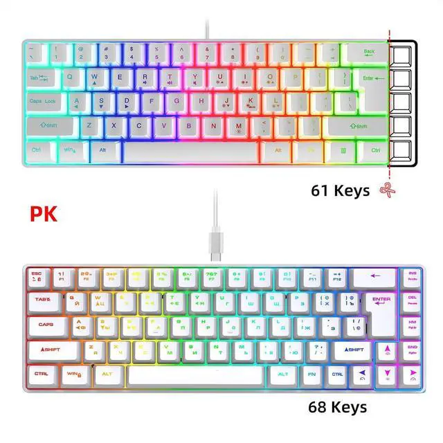 Keyboard with detachable key line and USB to type c connectors for easy typing