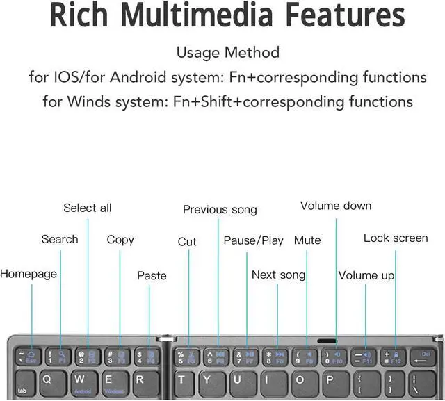 • [PORTABLE DESIGN] The triple fold design makes this keyboard compact and easy to carry, for on-the-go use.