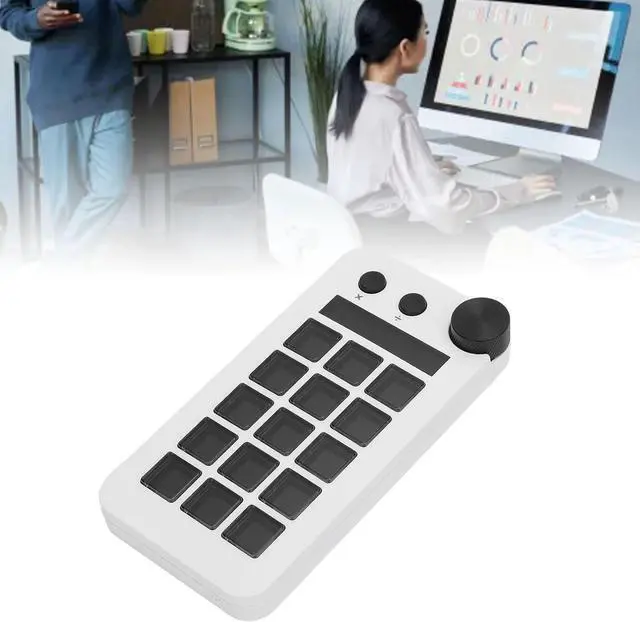 Zopsc Stream Controller with Knob, 15 Macro Keys Customizable Visual Keyboard for PC, LCD Keys Stream Controller (White)