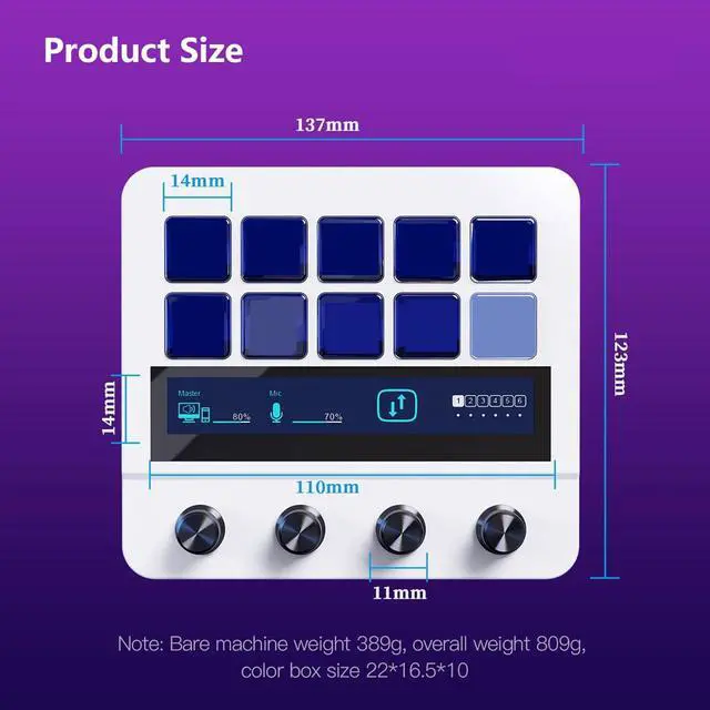 for live streaming, video editing, and graphics, this device allows users to switches scenes, adjust sound, and execute complex with ease
