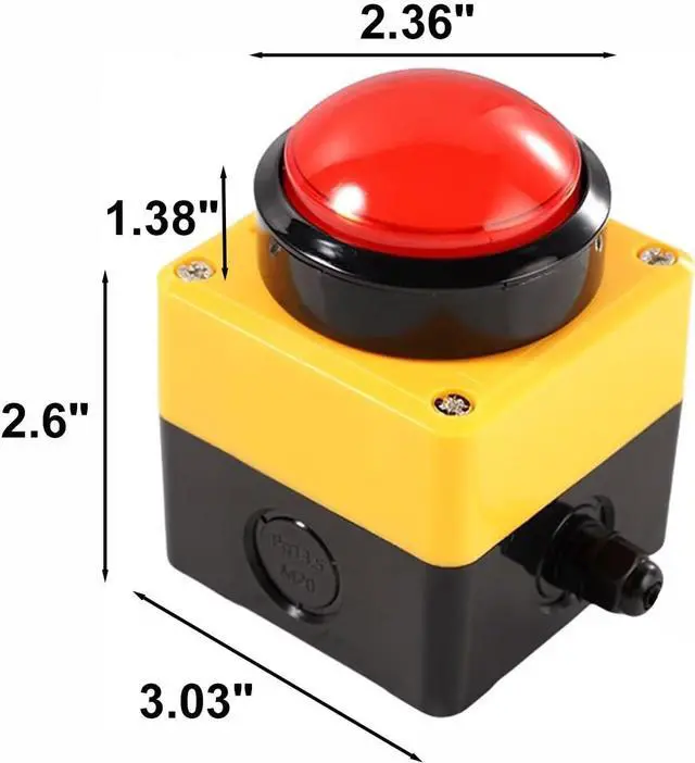 Product Size: The base of this button is a 2.6" x 3" square base with an overall height of 3.98".
