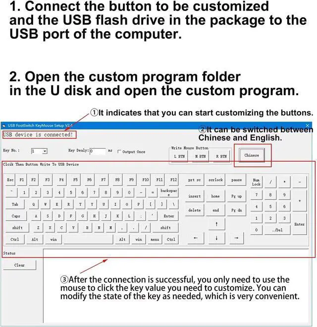 This USB button is customizable. The package includes a USB flash drive, which includes the program to change the button and instructions on how to use it. You can change the program of this USB button according to your needs.