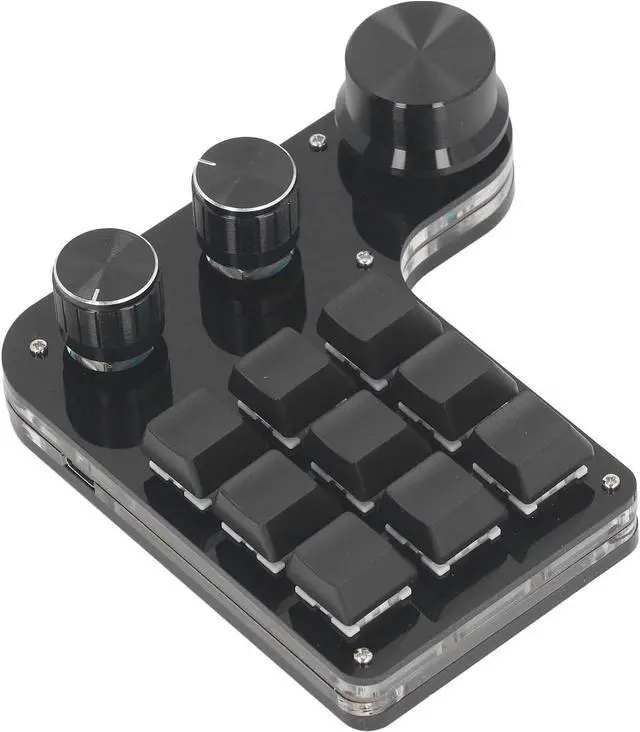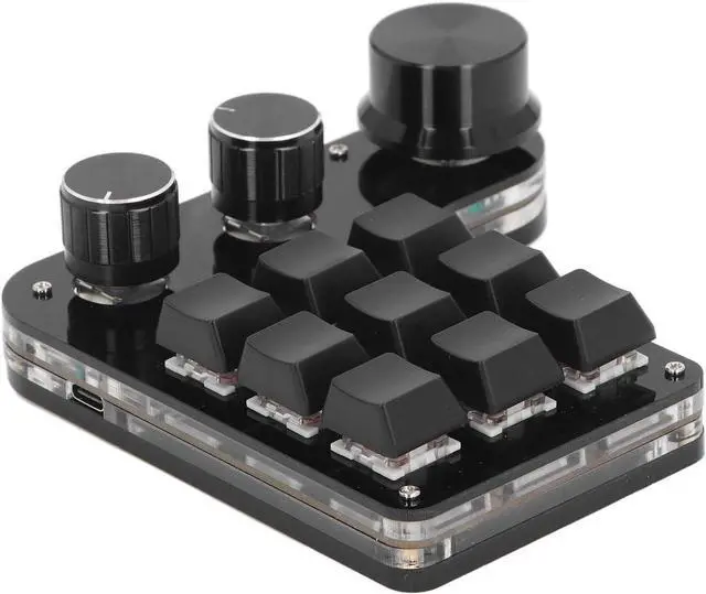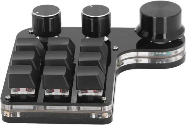 [Custom Mini Mechanical Keypad] : Features 9 keys and 3 control knobs, with dustproof red switch and rgb led for customizable use.