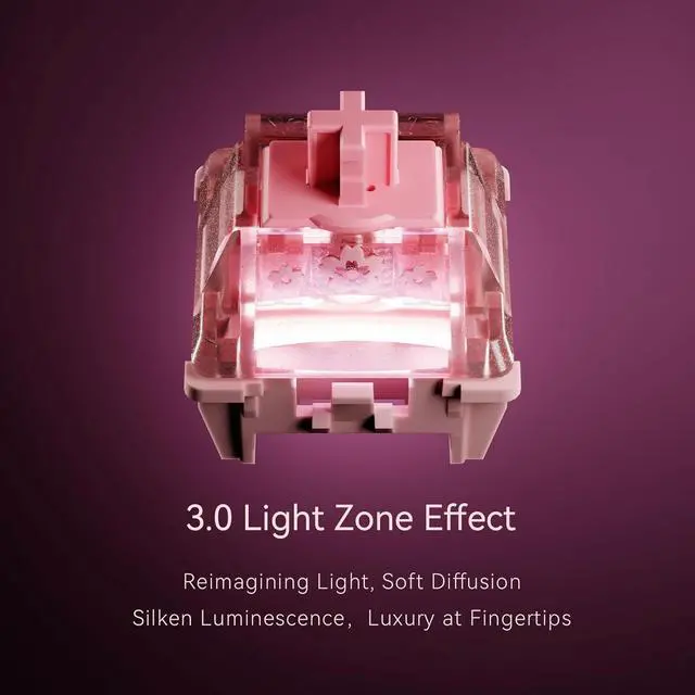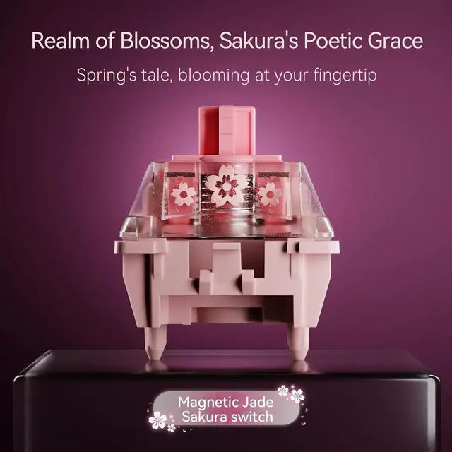 Magnetic Jade Sakura Switch Dual-Color Petal-Textured Switches 22mm Extended Spring for Smooth Rebound,3.0 Glittery RGB Top Cover Dancing Sakura Lighting + HlFl Bass Chamber Crisp Tactile Feedback Like Petals on Water