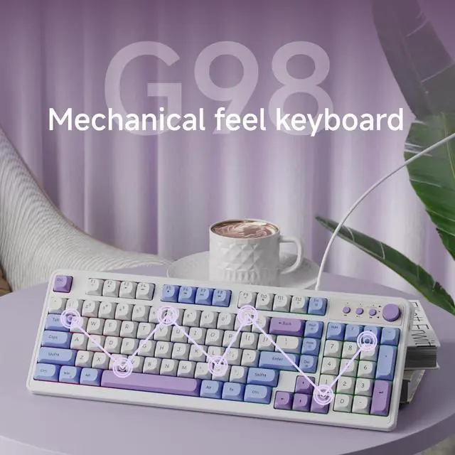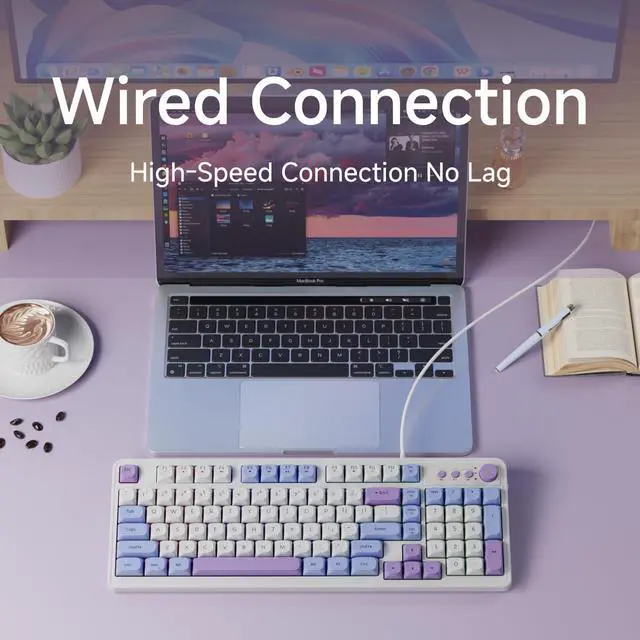 Compact 96% Layout & Dual Color Keyboard: The cream keyboard has a full-function 98-key layouthat maximizes space efficiency, preserving essential letters, numbers, and function keys.Enjoy the benefits of a space-saving, streamlined layout that still offers the full functionality you need for work or play.