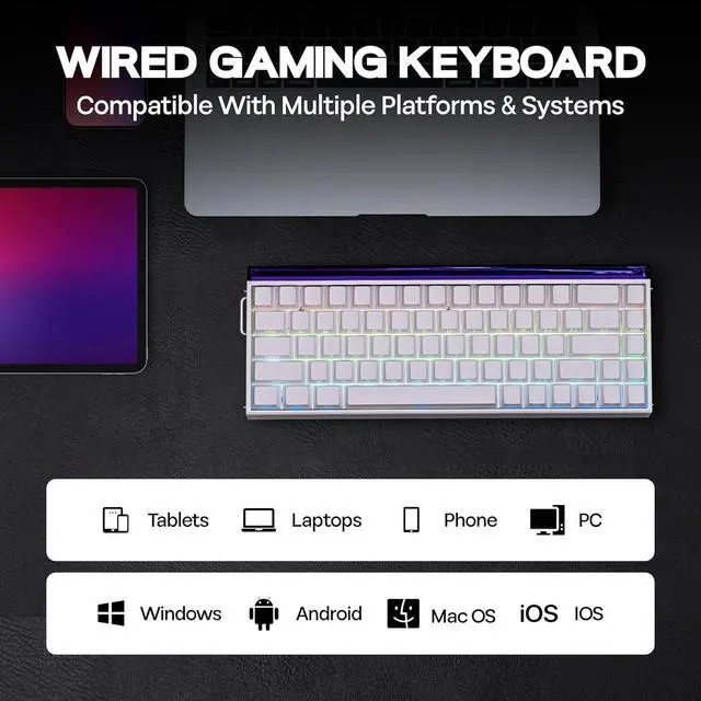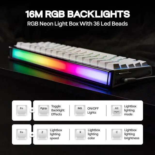 Customizable RGB Lightbox & Backlits The impressive lightbox design at the front provides an exciting and immersive gaming atmosphere. Equipped with south-facing per-key LEDs, the Hero68 HE shines brightly, offering clear visibility for daytime work and thrilling nighttime gaming. Forget about the hassle of locating keys in dim conditionseach command is effortlessly within reach, complemented by a vibrant RGB backlight that can be customized in terms of color, effects, saturation, brightness, and speed. Elevate your environment into a lively gaming sanctuary, relying on the Hero68 HE as a steadfast companion for achievement and a resilient surface for your creative endeavors.