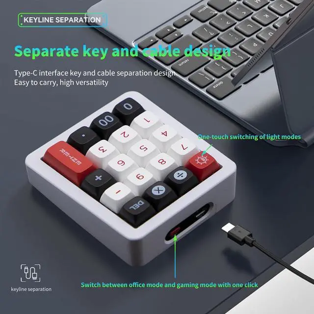 1.Detachable Type-C CablePortable & Versatile The keyboard features a Type-C detachable cable for easy portability and compatibility with universal cables. 2.Full N-Key RolloverNo Input Conflicts Enjoy accurate keystrokes with full N-key rollover.Perfect for fast typing or intense gaming without missing a command. 3.Quiet Linear Red SwitchesSmooth and Silent Typing Equipped with linear red switches for smooth and quiet keystrokes.Ideal for office environments or late-night gaming. 4.Compact LayoutSave Desk Space Without Sacrificing Functionality Space-saving design fits tight setups or travel use,while retaining full functionality and comfort. 5.Plug & Play Compatibility with Windows/macOS Fully compatible with Windows and macOS systems.No drivers neededjust plug in and start working or gaming.