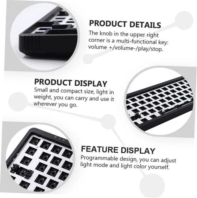 Keyboard case:hot-swappable holder and 3/5-pin shafts are fully compatible with mechanical shafts,DIY Kit for Keyboard