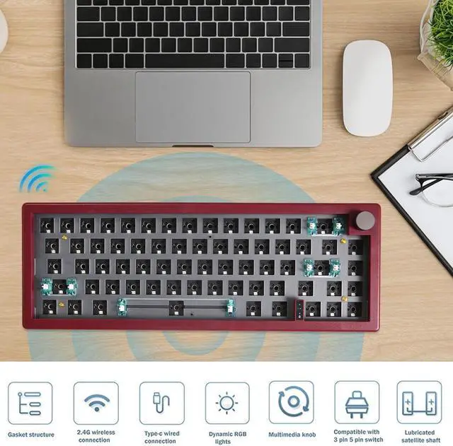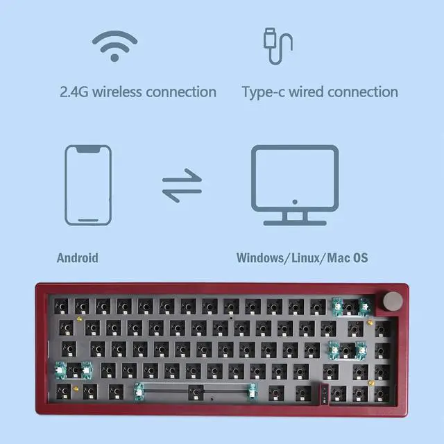 Improved Functionality: This Mechanical Keyboard Wireless has a stylish appearance and a simple layout with a large round knob that allows you to conveniently adjust the volume and brightness. It also has other functions that make your typing experience more comfortable and efficient.