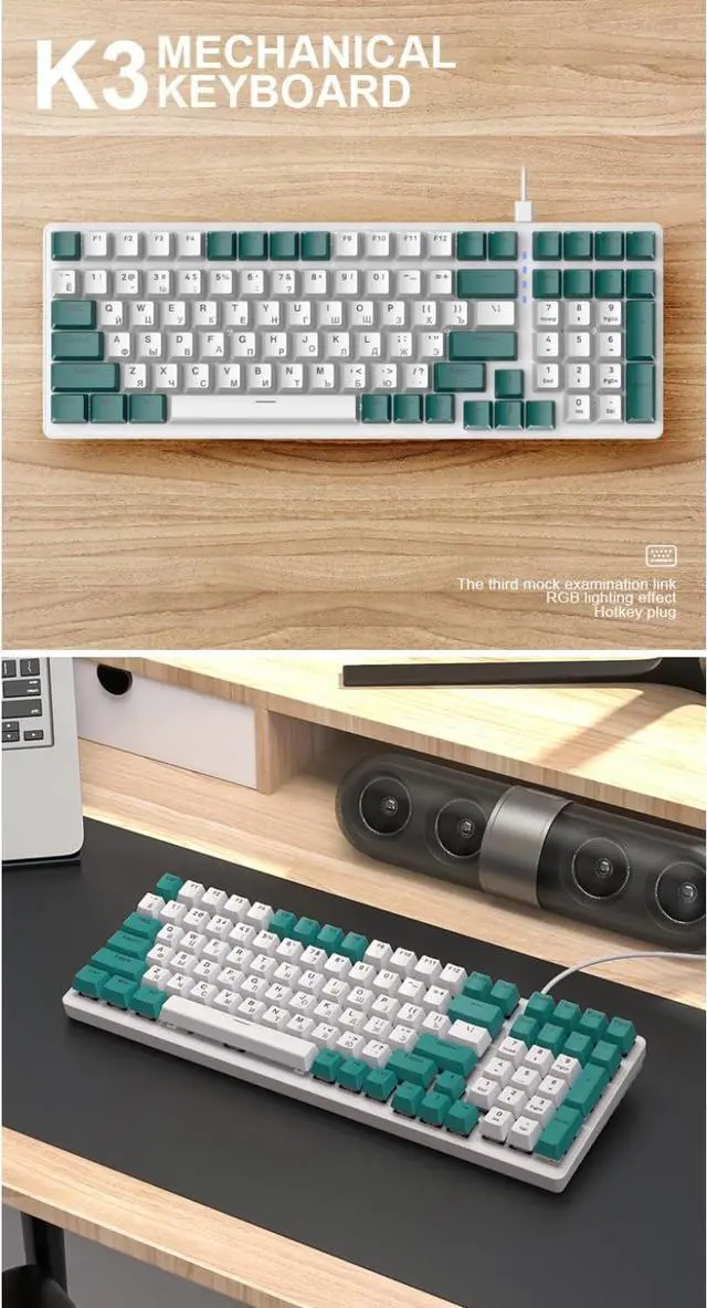 K3 Mechanical Keyboard Russian Mechanical Keyboard 100 Keys Gaming Office Gaming Computer Keyboard Full Keys No Punch Mult e Light Effects Personalised Keycaps Wired Keyboard