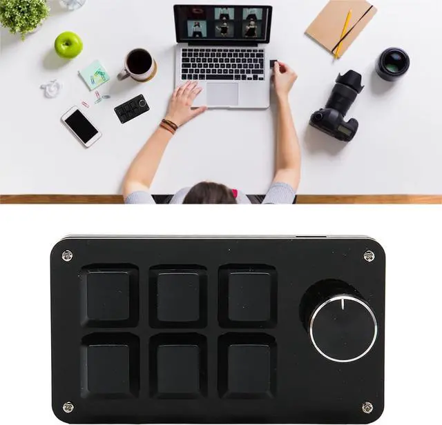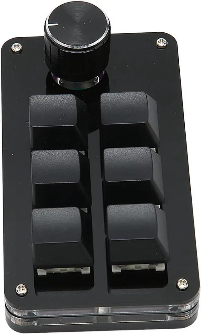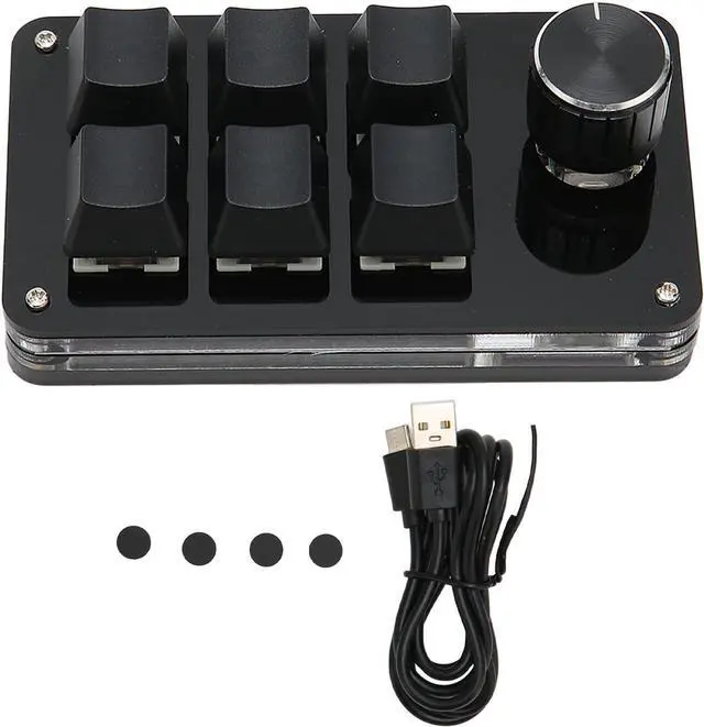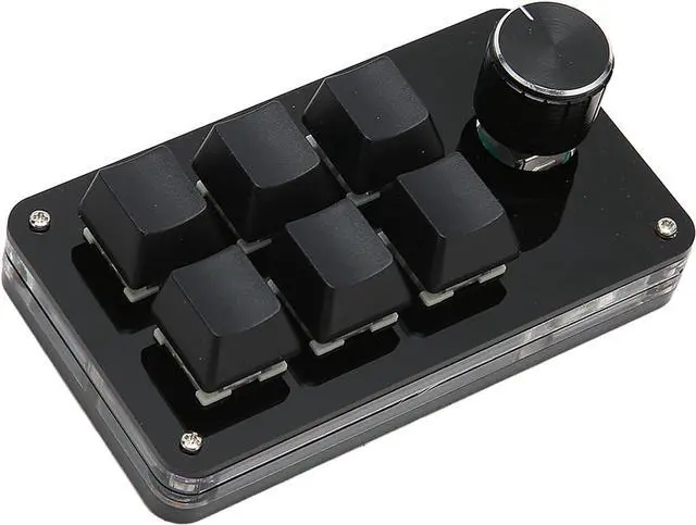 6 Key One Handed Programmable Mechanical Keyboard with Knob, Wired, Plug and Play, for Gaming and Office, Multi Functional Mini Keypad (Black)