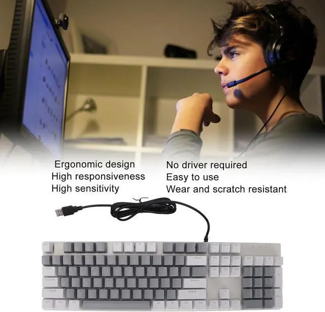 Ergonomic Design: Stability and comfort for long typing sessions without wrist support. Dual color injected keycaps provide sturdy backlighting.