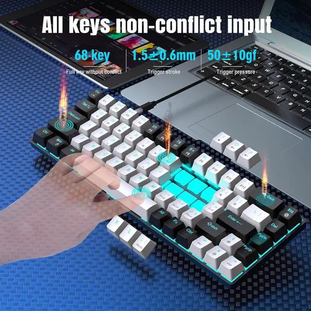 [Strong Compatibility]: The 68 key mechanical keyboard is compatible with for Windows, for OS X, for Linux and other computer systems, and has a compact and portable design, easy to carry and use.
