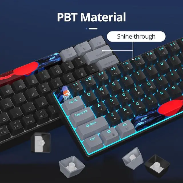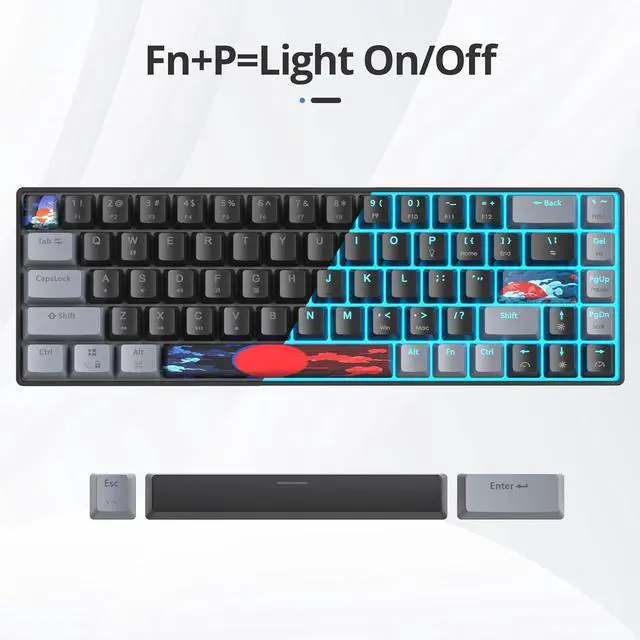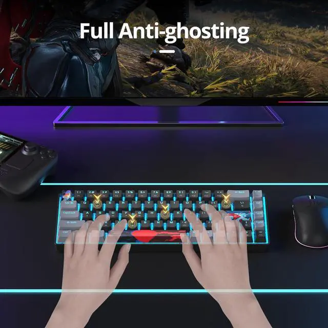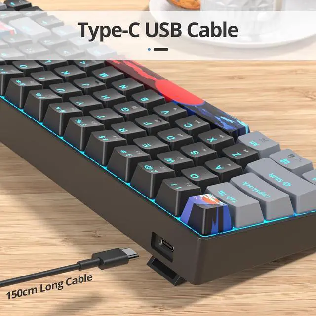 Mini Portable 60% Compact Layout:: This mini small pc gaming keyboard has a 60% ultra-compact layout separate arrow keys, No numpad, which minimizes the size of the keyboard on the basis of complete functions, freeing up more desktop space for users.