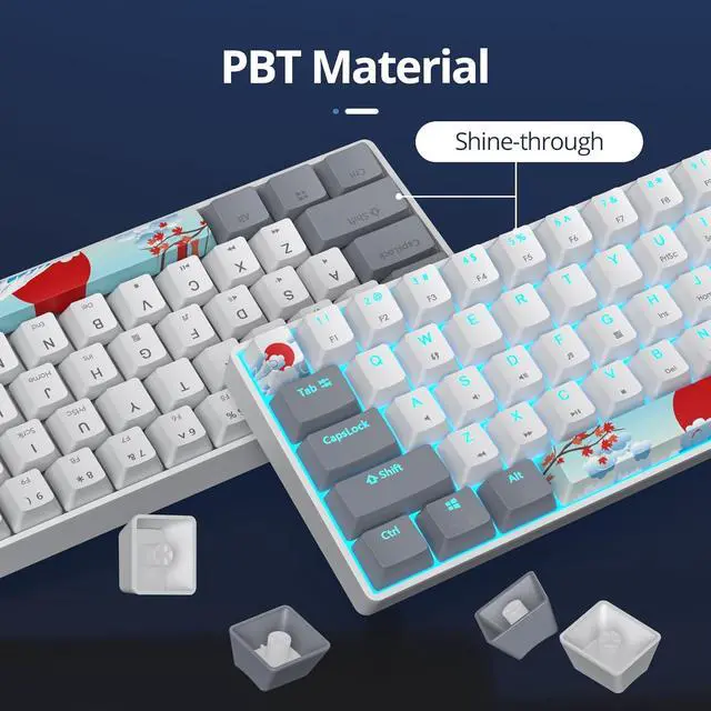 PBT Keycaps with Backlit ICE Blue LED: SURMEN pc gaming keyboard 60 percent is designed with single led lighting effect, shinethrough letters creating a cool and colorful game atmosphere to enhance the excitement of the game. Solid base with double injection PBT keycaps design, are durable, oil-resistant, and stay true to color even after long use