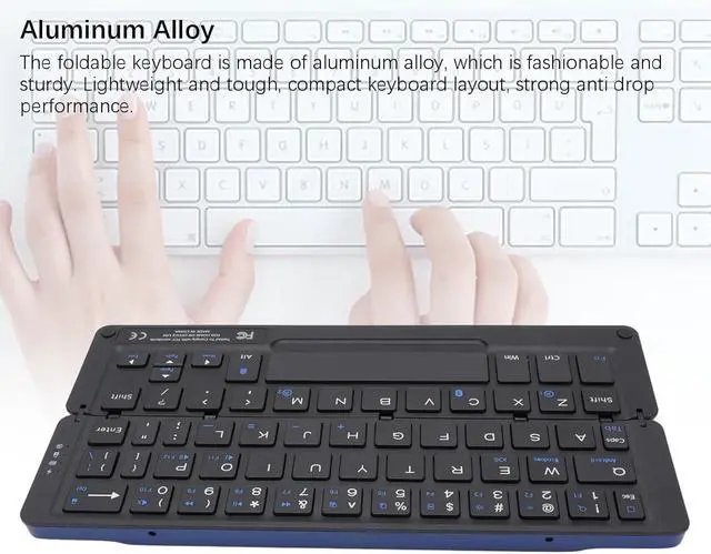 Aluminum Alloy: The foldable keyboard is made of aluminum alloy, which is fashionable and sturdy. Lightweight and tough, compact keyboard layout, strong anti drop performance.