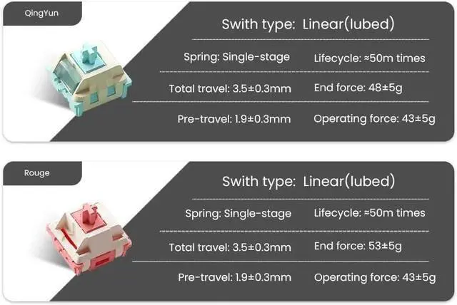 Responsive Typing Experience: Equipped with a Leaf spring Beryllium Copper mount and high-quality PBT keycaps for superior feedback.